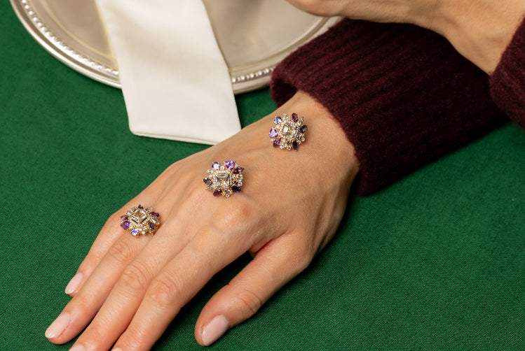 India, with its rich tradition of design and jewelry-making, is our core influence. The vivid colors of gemstones, the varied array of techniques, and the diverse cultural mores and experiences that India has to offer are the backbone of what we do. Our designs translate these into the global reality of today for customers across the world. This is fine jewelry that is effortless. It invokes joy and confidence.
