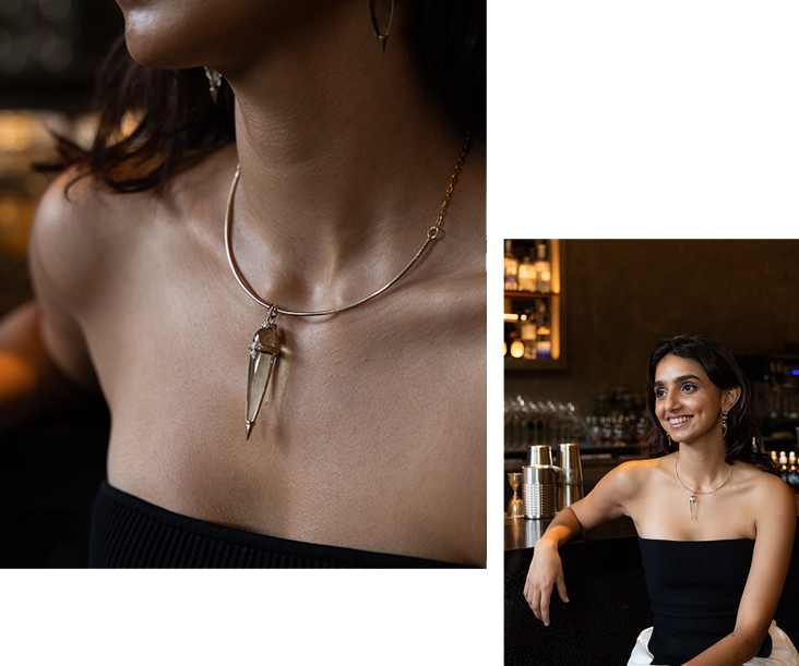A - I’m drawn to fine jewelry for its simplicity and versatility. It’s the kind of thing that effortlessly enhances any look, making even the everyday feel a little more put-together. It brings me joy because it’s subtle yet so impactful.
