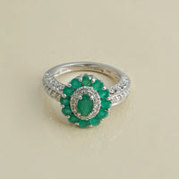 Handcrafted in gold, our take on the classic solitaire ear tops, the Azure holds a faceted emerald at its heart with a double halo of natural diamonds and emerald rounds.