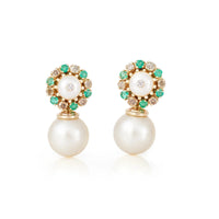 "Pearls are always appropriate," once declared Jackie Kennedy, and we agree! Namesake of the forever pearl icon, Jackie necklace is destined to make a statement. The necklace is strung on 3 delicate lines of pearls meeting at an elaborately designed horizontal pendant dressed in a diamond-pierced pearl triplet. Alternating natural champagne diamonds and faceted emeralds border the pendant. Style it with a popping red shirt for a perfect Sunday summer brunch!