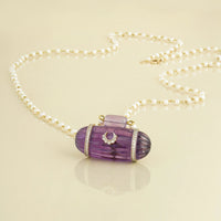 These statement earrings feature a carved purple amethyst amulet, balanced by delicate natural diamond crescents. Perfect for adding some colou. . . Read More