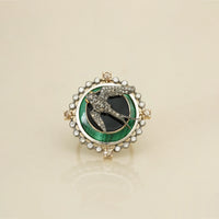A pair of drop earrings that beautifully captures the grandeur of birds in flight. Each earring feature a simple, malachite base with a black top, thoughtfully chosen to highlight the birds, dressed in natural rose-cut diamonds. Wear them to parties, on dates, or just to spruce up your workwear when you feel like dressing up.