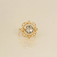 Handcrafted in gold, the Sana earrings are little treasures of the past to be cherished in the now. With a raw natural uncut diamond at their heart, in an open claw setting (Pachchikam), bordered by seed pearls, these earrings bring together the charm of the quaint with the design language of the contemporary.