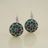 Our unmistakable identity, our signature colors and the artisanal skills that come into play when reviving an old technique is what this design stands for! The elements on this neckpiece carefully bring together, a mix bag of techniques, natural rose cut diamonds and Gemstones.