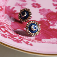 Painted a vibrant blue, the Sarai Cobalt blue Ring is like the cherry on top! A pretty little natural diamond-set crescent moon rests at the center of the blue enamel center, bordered by a twisted gold wire and bezel-set natural rose-cut diamonds.