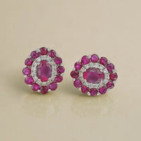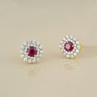 Handcrafted in gold, the Amore ring, like its name, speaks volumes of love. The ring features a beautiful Ruby at its center dressed up with a halo of natural brilliant-cut diamonds and a natural diamond-encrusted shank. Simple yet elegant, it is an ideal band for expressing your love through gestures.