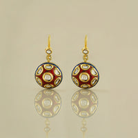 A vibrant melody of the colors, the Benaras Ring paints a vivid picture of India's festive spirit. A rich red Meena (enamel) adorns the disc on which are set natural polki/uncut diamonds resembling a rosette, a nod to timeless elegance. A border of blue Meena embraces the vivid red, a tribute to the kaleidoscope of colors that adorn India during celebrations.