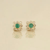Inspired by vintage settings, the Julia ring is perfect for someone who loves subtle details and a pop of color. The ring is handcrafted in gold, with a halo of natural rose-cut diamonds surrounding the gorgeous green emeralds and carved details on the shank that are hard to miss!