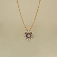 Pretty and petite, Zoe hits the sweet spot between modern and timeless. Each unit of the pair holds an exotic grey freshwater pearl pierced with prong-set natural diamond and surrounded by a halo of more natural brilliant-cut diamonds.