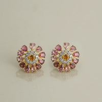 Mellowed sophistication with a hint of quirk is what the Dahlia ring stands for. The central unit featuring natural brilliant-cut diamonds is surrounded by delicate units of pink tourmalines that shimmy with the movement of your hand, the highlight of this eccentric jewel.