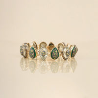 The Clara Ring is a luminous play of color and brilliance. At its core rests a verdant green amethyst, its depth enhanced by clusters of pavé-set sapphires and tsavorites that capture the eye placed in an unevenly even manner, adding to this whimsical elegance.